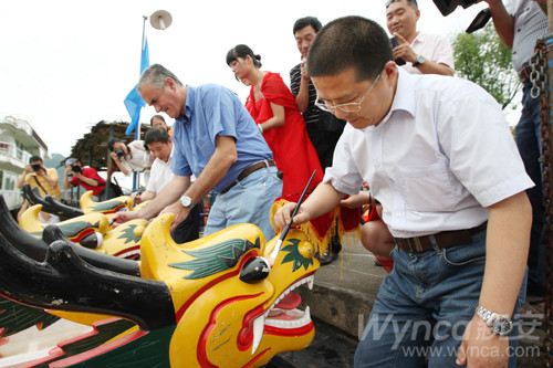 6月9日下午,新安集团两年一届的新安龙舟赛在新安江上激情上演。本届龙舟赛共有农化事业部、农药厂、化工二厂、有机硅事业部、有机硅厂、硅酮密封胶厂、热电厂、集团机关联队、采购中心、新安物流、新安包装、新安迈图、开化合成、开化元通、镇江江南、泰兴兴安等16支代表队参赛。经过激烈角逐,热电厂代表队获得了一等奖;开化元通和新安物流代表队获得了二等奖;有机硅厂、开化合成、集团机关三支代表队获得了三等奖。图为在龙舟赛前的开幕式上,集团领导为龙舟点睛。