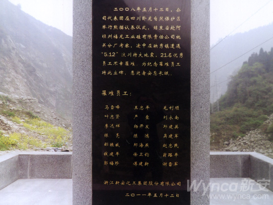 王伟董事长在调研期间还与阿坝州、汶川县政府有关领导一道专程前往汶川县映秀镇“5.12”汶川大地震集团公司员工遇难地,为“纪念碑”落成举行祭祀仪式,并向纪念碑敬献花篮。