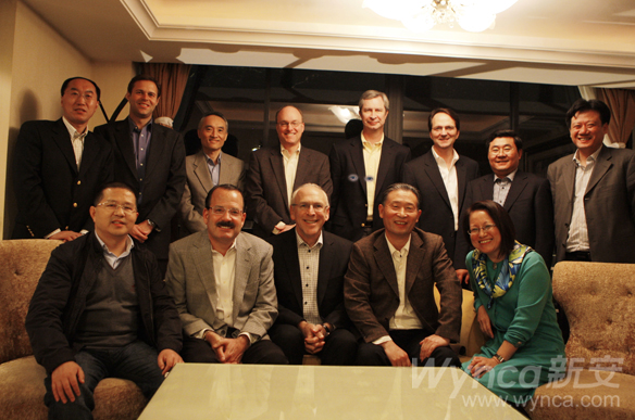 道格.约翰斯先生(后左二)、比尔.卡特先生(后右四)、 约翰.当道夫先生(后左四)、方江南副总经理(后右二)